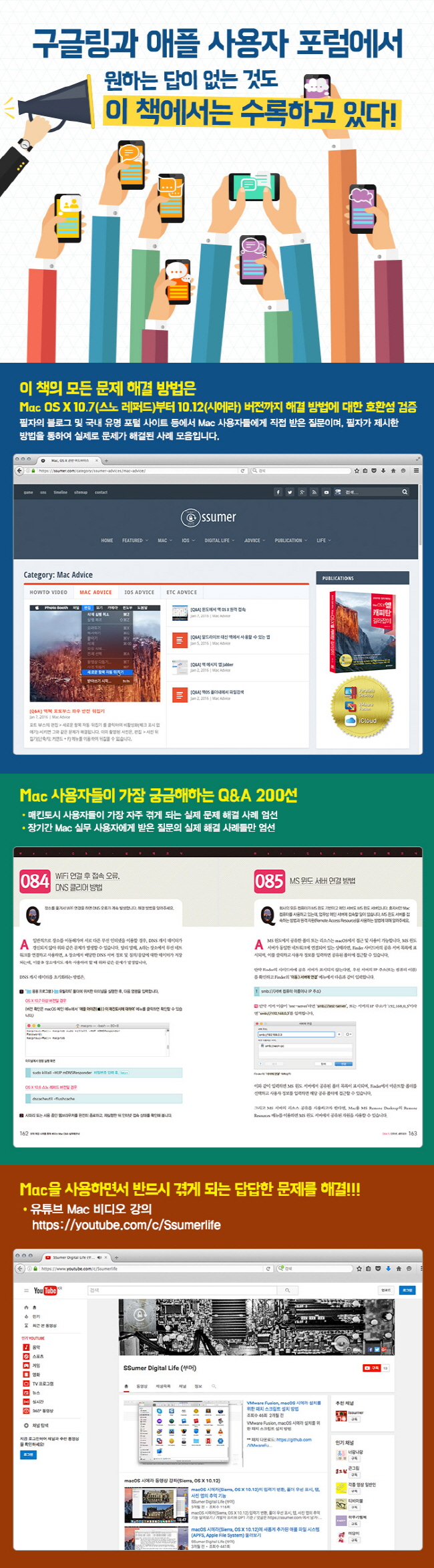 ÀÌ Ã¥ÀÇ Æ¯Â¡ MacÀ» »ç¿ëÇÏ´Ùº¸¸é ¾ðÁ¨°¡ ¹Ýµå½Ã ºÎµúÄ¡°Ô µÇ´Â ¿©·¯ °¡Áö ¹®Á¦µéÀ» ºü¸£°í ½±°Ô ÇØ°áÇÒ ¼ö ÀÖµµ·Ï °¢ ºÐ·ù¿¡ µû¶ó ´Ù¾çÇÑ ¹æ½ÄÀÇ ÇØ°á ¹æ¹ý°ú Å×Å©´Ð, ÆÁ µîÀ» ¼ö·ÏÇÏ¿´½À´Ï´Ù. ÀÌ Ã¥¿¡¼ ¼Ò°³µÇ´Â ¸ðµç ¹®Á¦¿Í ÇØ°á ¹æ¹ýÀº ÇÊÀÚÀÇ ºí·Î±× ¹× ±¹³» À¯¸í Æ÷ÅÐ »çÀÌÆ® µî¿¡¼ Mac »ç¿ëÀڵ鿡°Ô Á÷Á¢ ¹ÞÀº Áú¹®À̸ç, ÇÊÀÚ°¡ Á¦½ÃÇÑ ¹æ¹ýÀ» ÅëÇÏ¿© ½ÇÁ¦·Î ¹®Á¦°¡ ÇØ°áµÈ »ç·Ê ¸ðÀ½ÀÔ´Ï´Ù. 5³â ÀÌ»ó Àå±â°£¿¡ °ÉÃÄ ¹®Á¦¿Í ÇØ°á »ç·Ê¸¦ Á¤¸®ÇÏ¿´°í, ±× Áß °¡Àå ºó¹øÇÏ°Ô ¹ß»ýÇϰųª Áß¿äÇÑ 200¿© °³ÀÇ ¹®Á¦ ÇØ°á »ç·Ê¸¦ ¾ö¼±ÇÏ¿´½À´Ï´Ù. Áý, Á÷Àå, ¿ø°Ý Á¦¾î ȯ°æ ¹× µ¥½ºÅ©Å¾(¸Æ¹Ì´Ï, ¾ÆÀ̸Æ, ¸ÆÇÁ·Î), ³ëÆ®ºÏ(¸ÆºÏ, ¸ÆºÏ¿¡¾î, ·¹Æ¼³ª ¸ÆºÏÇÁ·Î) µîÀÇ ´Ù¾çÇÑ È¯°æ¿¡¼ ¹ß»ýÇÏ´Â ¹®Á¦µé°ú ÇØ°á ¹æ¹ýÀ» ¼ö·ÏÇÏ¿´½À´Ï´Ù. ¾î¶² ȯ°æ¿¡¼ MacÀ» »ç¿ëÇÏ´ø ºü¸£°Ô ¹®Á¦¸¦ ÇØ°áÇÒ ¼ö ÀÖ´Â Áö¸§±æÀ» Á¦½ÃÇϱâ À§ÇØ ³ë·ÂÇÏ¿´½À´Ï´Ù.