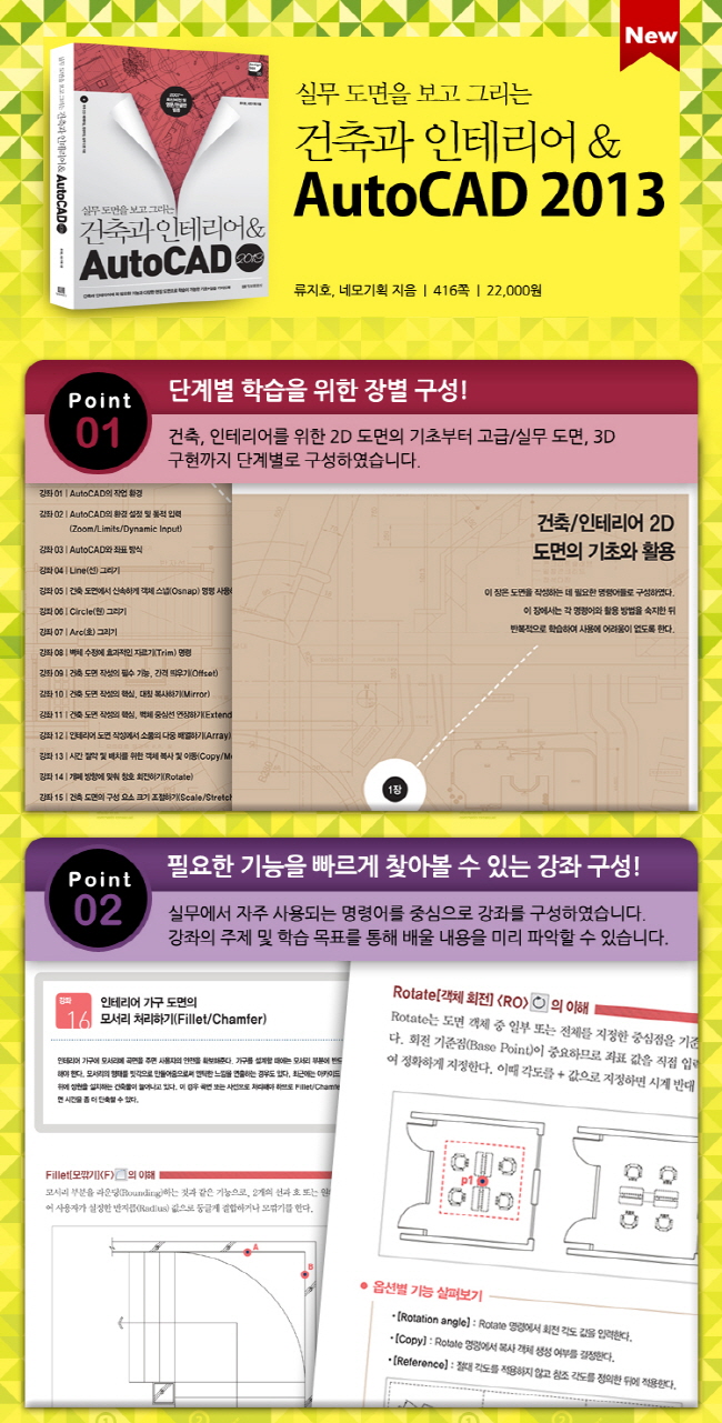 °ÇÃà ¹× ÀÎÅ׸®¾î ÇöÀå µµ¸éÀ» Á¦°øÇÏ¿© ½Ç¹«¿¡¼­ ÇÊ¿äÇÑ µµ¸éÀÌ ¹«¾ùÀÎÁö ÆÄ¾ÇÇÒ ¼ö ÀÖ½À´Ï´Ù. ½Ç¹«ÀÚµéÀÌ »ç¿ëÇÏ´Â ¸í·É¹®(Command Line) ¹æ½ÄÀÇ Â¥ÀÓ»õ ÀÖ´Â 3´Ü°è ÇнÀ¹ýÀ¸·Î ½Ç¹« ÀûÀÀ ´É·ÂÀ» Ű¿ì°í, 300°³°¡ ³Ñ´Â ¿¹Á¦ ¹× ½Ç½À µµ¸éÀ» ÅëÇØ ¿ÀÅäijµåÀÇ ´Ù¾çÇÑ ±â´ÉµéÀ» ¿¬¸¶ÇÒ ¼ö ÀÖ½À´Ï´Ù.