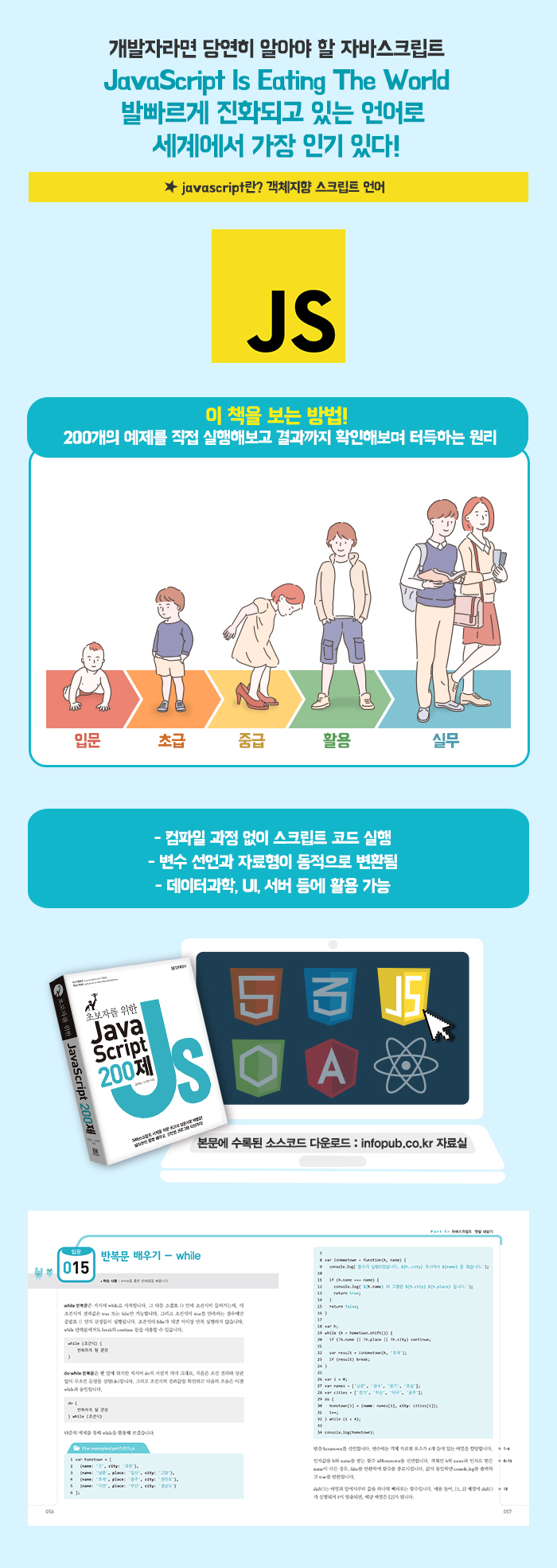 ÀÌ Ã¥À» ÇнÀÇϱâ À§ÇÑ º»¹® ¿¹Á¦ ÆÄÀÏÀº Á¤º¸¹®È»ç ȨÆäÀÌÁö(infopub.co.kr) ÀÚ·á½Ç¿¡¼ ´Ù¿î·Îµå °¡´ÉÇϸç, ÇнÀ Áß ±Ã±ÝÇÑ »çÇ×Àº ÀúÀÚ È¨ÆäÀÌÁö(github.com/js-200/js-200-examples/issues)¿¡¼ Çǵå¹é °¡´ÉÇÏ´Ù.