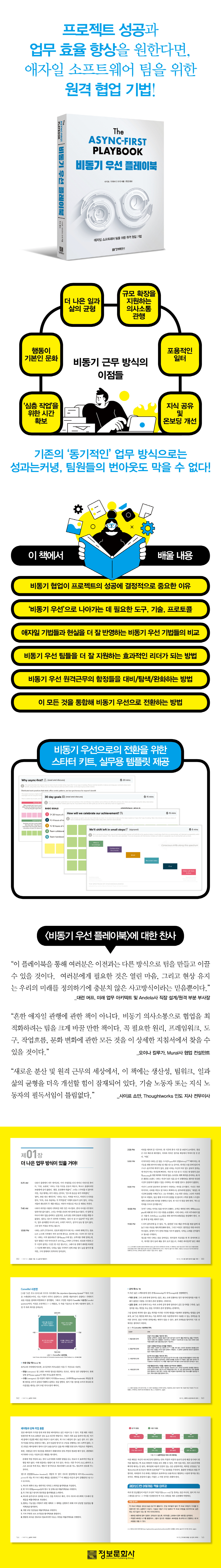 ºñµ¿±â ¿ì¼± ¾÷¹« ¹æ½ÄÀº µ¿±âÀû »óÈ£ÀÛ¿ë°ú ºñµ¿±â »óÈ£ÀÛ¿ëÀÇ ±ÕÇüÀ» Ãß±¸ÇÑ´Ù. ÀÌ Ã¥Àº ¹«Á¶°Ç ºñµ¿±â ¾÷¹« ¹æ½ÄÀ» Âù¾çÇϰí ÀÖÁö ¾Ê´Ù. Á¦¸ñ ¼Ó ¡®¿ì¼±¡¯¿¡¼­ ¾Ë ¼ö ÀÖµíÀÌ, µ¶ÀÚ°¡ °¢ÀÚÀÇ ÆÀ »óȲ¿¡ ¸Â°Ô, µ¿±âÀû ¾÷¹« ¹æ½Ä¿¡¼­ ºñµ¿±â¸¦ ¿ì¼±ÇÏ´Â ¾÷¹«·Î ÀüȯÇÒ ¼ö ÀÖµµ·Ï »ç·Á±í°Ô µ½´Â´Ù. ºñµ¿±â ¾÷¹« ¹æ½ÄÀÇ ÀåÁ¡°ú Çʿ伺À» ³í¸®ÀûÀ¸·Î Àü°³Çϸ鼭µµ, º¯È­¸¦ ü°¨ÇÒ ¼ö ÀÖ´Â ½ºÆåÆ®·³ À̹ÌÁö, ½Ç¹«ÀÚ ÅÛÇø´, °¢Á¾ ¿¹Á¦¿Í ºñµ¿±â ¿ì¼± ¾÷¹« ½ºÅ¸ÅÍ Å°Æ®¸¦ Á¦°øÇÑ´Ù. ÀúÀÚ´Â ºñµ¿±â ¾÷¹«¿¡ ´ëÇØ ¡®ÀϺδ °Ô¸±¶ó, ÀϺδ ¿ËÈ£ÀÚ¡¯ÀÇ Åµµ¸¦ ÃëÇØ¾ß ÇÑ´Ù´Â °ÍÀ» ²ÙÁØÈ÷ °­Á¶ÇÏ´Â ¸¸Å­, ºñµ¿±â ¾÷¹«ÀÇ ³­Á¦µéÀ» ÆÄÇìÄ¡°í ºüÁö±â ½¬¿î ÇÔÁ¤µµ ¸ðµÎ ¾ð±ÞÇÑ´Ù. ÀÌ Ã¥Àº ¾ÖÀÚÀÏ ±Ù¹« ¹æ½ÄÀÌ Àͼ÷ÇÑ ¼ÒÇÁÆ®¿þ¾î °³¹ßÀÚµéÀ» À§ÇØ ¾²¿´Áö¸¸, ²À ±â¼úÀü¹®°¡°¡ ¾Æ´Ï¶óµµ È£±â½É ¸¹Àº Áö½Ä ³ëµ¿ÀÚ¶ó¸é ÀÌ Ã¥¿¡¼­ ¹ÎøÇÑ(agile) ¾÷¹« ¹æ½ÄÀ¸·Î °¡´Â ±æÀ» ã¾Æ³¾ ¼ö ÀÖÀ» °ÍÀÌ´Ù.