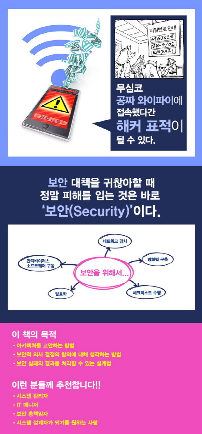 ÀÌ Ã¥Àº º¸¾È¿¡ ´ëÇÑ ÃÊ±Þ °³·Ð¼°¡ ¾Æ´Ï´Ù. ½Ã½ºÅÛ °ü¸®ÀÚ, IT ¸Å´ÏÀú, º¸¾È ÃÑÃ¥ÀÓÀÚ, ½Ã½ºÅÛ ¼³°èÀÚ°¡ µÇ±â¸¦ ¿øÇÏ´Â À̵éÀ» À§ÇÑ ´ëÇпø °Á Á¤µµ·Î »ý°¢ÇÏ¸é µÈ´Ù. ÇÊÀÚ´Â µ¶ÀÚµéÀÌ ¹æÈº®ÀÌ ¹«¾ùÀÎÁö, ´ëĪŰ ¾ÏÈ£È¿Í °ø¿ëŰ ¾ÏÈ£ÈÀÇ Â÷ÀÌ´Â ¹«¾ùÀÎÁö¸¦ ÀÌ¹Ì ¾Ë°í ÀÖ´Ù°í °£ÁÖÇÏ¿´´Ù. ¾Æ¸¶µµ ÀϹÝÀûÀΠüũ¸®½ºÆ®¸¦ ÀÌ¹Ì º¸¾ÒÀ» °ÍÀ̰í, üũ¸®½ºÆ®¸¦ ±â¹ÝÀ¸·Î ÇÏ´Â º¸¾È ÆÄÆ®³Ê ÀÎÁõµµ ¹Þ¾Æº¸¾ÒÀ» °ÍÀ̸ç, ÀÌ¿¡ µû¸¥ »çÀü Áغñ »çÇ×µµ ´ëºÎºÐ µû¶óº¸¾ÒÀ» °ÍÀÌ´Ù.