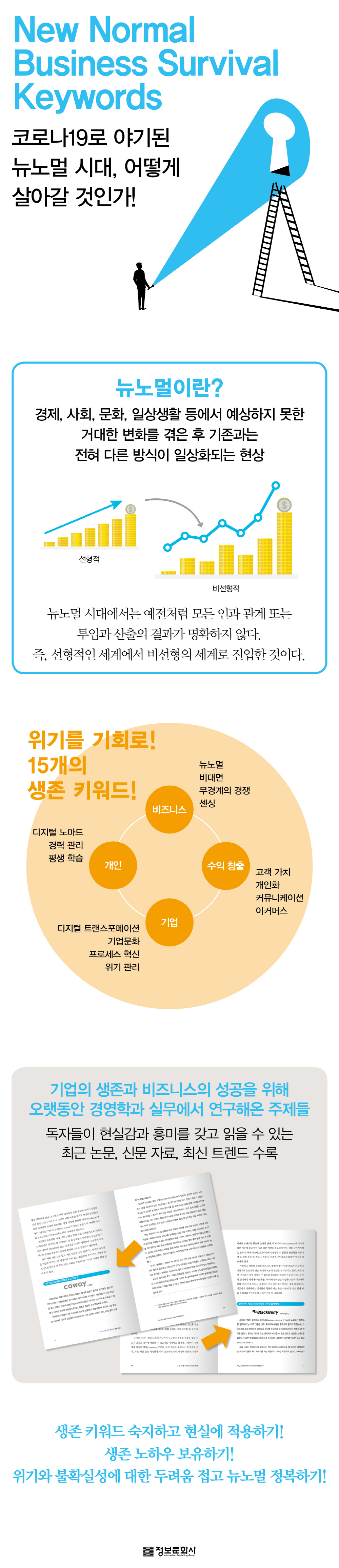Äڷγª19 ÀÌÈÄ ±Þº¯ÇÏ´Â ¼¼°è¿¡¼ ¿ì¸®´Â ¾î¶»°Ô ¡®Àß¡¯ »ì ¼ö ÀÖÀ»±î? ±â¾÷°ú °³ÀÎÀÇ ½ÃÇàÂø¿À¸¦ ÁÙÀ̰í, »ýÁ¸·ÂÀ» ³ôÀÏ ¼ö ÀÖ´Â ¡®»ýÁ¸ °¡À̵塯°¡ ÀÌ Ã¥¿¡ ´ã°Ü ÀÖ´Ù. 1ºÎ¿¡¼´Â ´º³ë¸ÖÀÇ ÇÙ½ÉÀû Ư¡ÀÎ ºñ´ë¸éÀ» ÁßÁ¡À¸·Î ´Ù·é´Ù. ºñ´ë¸é »óȲ°ú µðÁöÅÐ ±â¼úÀÌ ¹ÐÁ¢ÇÏ°Ô °áÇÕÇØ ¸¸µé¾î³»´Â »õ·Î¿î È帧À» ¡®´º³ë¸Ö¡¯, ¡®ºñ´ë¸é¡¯, ¡®¹«°æ°èÀÇ °æÀ, ¡®¼¾½Ì¡¯, ³× °¡Áö Ű¿öµå·Î È®ÀÎÇÒ ¼ö ÀÖ´Ù. 2ºÎ¿¡¼´Â ±â¾÷ÀÌ »ýÁ¸ÇÏ¿© ¼öÀÍÀ» âÃâÇϱâ À§ÇØ ÇÊ¿äÇÑ Å°¿öµå ³× °¡Áö¸¦ Á¦½ÃÇÑ´Ù. ¡®°í°´ °¡Ä¡¡¯, ¡®°³ÀÎÈ¡¯, ¡®Ä¿¹Â´ÏÄÉÀ̼ǡ¯, ¡®ÀÌÄ¿¸Ó½º¡¯¸¦ ÅëÇØ °í°´ÀÌ ¹«¾ùÀ» ¿øÇÏ´ÂÁö, ¾î¶² Á¦Ç°À» ¸¸µé¾î¾ß ÇÏ´ÂÁö, ¾î¶»°Ô Ä¿¹Â´ÏÄÉÀ̼ÇÇØ¾ß ÇÏ´ÂÁö, ¾î¶»°Ô ÆÇ¸ÅÇØ¾ß ÇÏ´ÂÁö »ìÆìº»´Ù. 3ºÎ¿¡¼´Â ºñ´ë¸é ±â¹ÝÀ» ÀüÁ¦·Î ±â¾÷ÀÌ ÁغñÇØ¾ß Çϴ Ȱµ¿À» ¡®µðÁöÅÐ Æ®·£½ºÆ÷¸ÞÀ̼ǡ¯, ¡®±â¾÷ ¹®È¡¯, ¡®ÇÁ·Î¼¼½º Çõ½Å¡¯, ¡®À§±â °ü¸®¡¯ÀÇ ³× °¡Áö Ű¿öµå·Î È®ÀÎÇÒ ¼ö ÀÖ´Ù. 4ºÎ¿¡¼´Â ¡®µðÁöÅÐ ³ë¸¶µå¡¯, ¡®°æ·Â °ü¸®¡¯, ¡®Æò»ý ÇнÀ¡¯, ¼¼ °¡Áö Ű¿öµå¸¦ ÅëÇØ °³ÀÎÀÌ »ýÁ¸Çϱâ À§ÇØ ¹«¾ùÀ» ÇØ¾ß ÇÏ´ÂÁö ½ÇÁúÀûÀÎ ¹æ¾ÈÀ» º¸¿©ÁØ´Ù. ÃÖ±Ù ³í¹®, ½Å¹® ÀÚ·á, ÃֽŠƮ·»µå¸¦ Ȱ¿ëÇØ Ű¿öµå¸¦ ÀÍÈú ¼ö ÀÖ°Ô ±¸¼ºµÇ¾î ÀÖ¾î µ¶ÀÚµéÀÌ Çö½Ç°¨°ú Èï¹Ì¸¦ ´À³¢¸ç ÀÐÀ» ¼ö ÀÖ´Ù.