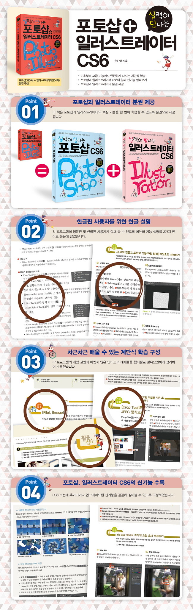 ±¸¼º Ư¡ ±âÃʺÎÅÍ °í±Þ ±â´É±îÁö źźÇÏ°Ô ´ÙÁö´Â °è´Ü½Ä ÇнÀ Æ÷Åä¼¥°ú ÀÏ·¯½ºÆ®·¹ÀÌÅ͸¦ Àü¹®°¡ ¸øÁö¾Ê°Ô ´Ù·ç¾î »çÁøÀ» ¸®ÅÍĪÇϰí ÀÏ·¯½ºÆ®¸¦ Á¦ÀÛÇÏ°í ½ÍÁö¸¸ º¹ÀâÇØ º¸ÀÌ´Â ±â´É°ú ¾î·Æ°Ô¸¸ ´À²¸Áö´Â ÀÛ¾÷ °úÁ¤ ¶§¹®¿¡ ¾öµÎ¸¦ ³»Áö ¸øÇÑ Ãʺ¸ÀÚµéÀ» À§ÇØ ÁغñÇß½À´Ï´Ù. º»¹®ÀÇ °£·« °³¿ä¸¦ ÇнÀÇÏ¿© ÇÁ·Î±×·¥ÀÇ ±â´ÉÀ» ÀÌÇØÇϰí ÷ºÎµÈ ¿¹Á¦ ÆÄÀÏ·Î °£·« ½Ç½ÀÀ» µû¶óÇÏ¸é¼ ¾Õ¼ ¹è¿î ±â´ÉÀ» ½º½º·Î ÀÍÇôº¸½Ê½Ã¿À. Â÷±ÙÂ÷±Ù ¹è¿ì´Â °è´Ü½Ä ÇнÀÀ¸·Î Ãʺ¸ÀÚµµ ½±°Ô Æ÷Åä¼¥°ú ÀÏ·¯½ºÆ®·¹ÀÌÅÍ¿¡ Àç¹Ì¸¦ ºÙÀÌ°í ½Ç·ÂÀ» ´ÙÁú ¼ö ÀÖ½À´Ï´Ù. Æ÷Åä¼¥°ú ÀÏ·¯½ºÆ®·¹ÀÌÅÍ CS6ÀÇ ¾ËÂ¥ ½Å±â´É »ìÆìº¸±â ±×·¡ÇÈ ÇÁ·Î±×·¥ÀÇ ´ëÇ¥ÀûÀÎ Æ÷Åä¼¥°ú ÀÏ·¯½ºÆ®·¹ÀÌÅͰ¡ ¶Ç ÇÑ ¹ø »õ·Ó°Ô ¹Ù²î¾ú½À´Ï´Ù. <½Ç·ÂÀÌ Å½³ª´Â Æ÷Åä¼¥+ÀÏ·¯½ºÆ®·¹ÀÌÅÍ CS6>¿¡¼´Â ¾÷±×·¹À̵åµÈ ±â´É°ú Ãß°¡µÈ ±â´ÉÀ» ²Ä²ÄÇÏ°Ô Â¤°í ³Ñ¾î°¥ ¼ö ÀÖ´Â ÀÌ·ÐÀûÀÎ ³»¿ëÀ» ±¸¼ºÇÏ¿´½À´Ï´Ù. ¶ÇÇÑ °£·« ½Ç½À¿¡¼ ½Å±â´ÉÀ» ÀÌ¿ëÇÏ¿© ½Ç½ÀÇØº¼ ¼ö ÀÖ´Â ³»¿ëµµ ÷°¡ÇÏ¿´½À´Ï´Ù. CS6ÀÇ ½Å±â´ÉÀ» ÇнÀÇÏ°í ½ÍÀº Ãʺ¸ÀÚ¿Í ÀÌÀü ¹öÀü°ú CS6ÀÇ ±â´ÉÀ» ºñ±³Çغ¸°í ½ÍÀº ±âÁ¸ »ç¿ëÀڵ鿡°Ôµµ ÀûÇÕÇÑ ÇнÀ¼¶ó°í ÃßõÇÒ ¼ö ÀÖ½À´Ï´Ù.