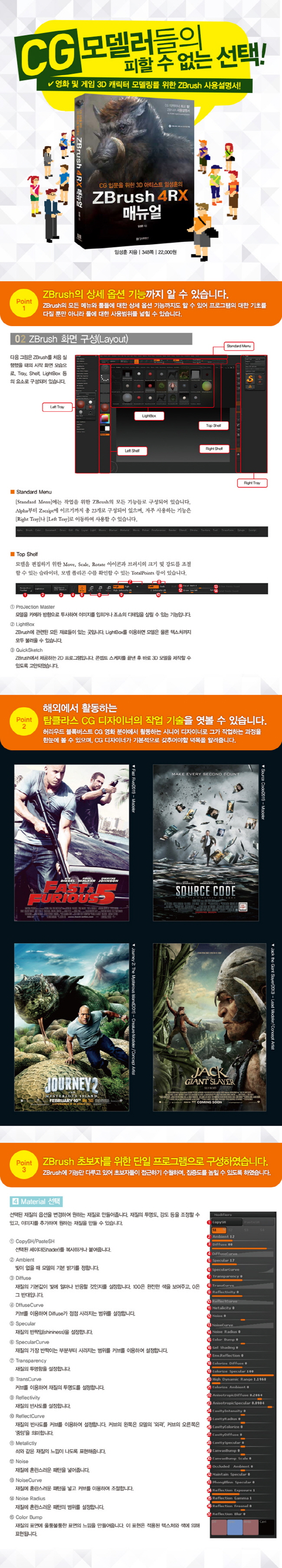 µ¶Ã¢ÀûÀ̸ç Ź¿ùÇÑ ±â´ÉÀ¸·Î ¿µÈ­ ¹× °ÔÀÓ µî CG ºÐ¾ß¿¡¼­ ¸¹ÀÌ »ç¿ëµÇ´Â ZBrush´Â ¾î´À Àü¹® ±×·¡ÇÈ ÇÁ·Î±×·¥µé°ú ¸¶Âù°¡Áö·Î ¼ö¸¹Àº ¸í·É¾î¿Í ±â´ÉµéÀÌ Çʿ信 ÀÇÇØ ±¸¼ºµÇ¾î ÀÖ½À´Ï´Ù. ±×·¯³ª ´ëºÎºÐÀÇ ¼­ÀûµéÀÌ ÁÖ·Î »ç¿ëµÇ´Â ±â´Éµé·Î¸¸ ±¸¼úµÇ¾î ÀÖ¾î »óȲ¿¡ µû¶ó Çʿ信 ÀÇÇØ ¸¸µé¾îÁø ±â´ÉµéÀ» ¾Ë±â ¾î·Æ´Ù´Â ´ÜÁ¡ÀÌ ÀÖ½À´Ï´Ù. ±×·¯³ª ¡®CG ÀÔ¹®À» À§ÇÑ 3D ¾ÆÆ¼½ºÆ® ÀÓ¼ºÈÆÀÇ ZBrush 4RX ¸Å´º¾óÀº¡¯ ±â´É ÇϳªÇϳª¸¦ ¼­¼úÇÏ¿© Àß »ç¿ëÇÏÁö ¾Ê´Â ±â´É±îÁöµµ ±Ã±ÝÁõÀ» ÇØ°áÇÒ ¼ö ÀÖ¾î ZBrushÀÇ ±âÃʸ¦ ´õ¿í ưưÇÏ°Ô ´ÙÁú ¼ö ÀÖÀ» °ÍÀÔ´Ï´Ù.