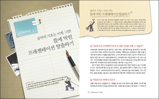 ÀÌ Ã¥Àº ±â´Éº°·Î ¡®ÆÄ¿öÆ÷ÀÎÆ®ÀÇ ±âÃʺÎÅÍ ¿Ï¼º±îÁö¡¯¸¦ ¼³¸íÇϴ åÀÌ ¾Æ´Ï¶ó, ÀڽۨÀ» ¹ÙÅÁÀ¸·Î °í°´ ¾Õ¿¡¼ ÇÁ·¹Á¨Å×À̼ÇÀ» ÁÖµµÇϴ Ưº°ÇÑ ÇÁ·¹Á¨Å×ÀÌ¼Ç Áغñ °úÁ¤À» ´ã°í ÀÖ´Ù. ¶ÇÇÑ ÆÄ¿öÆ÷ÀÎÆ®ÀÇ »õ·Î¿î ±â´É ¶Ç´Â ¸ô¶ú´ø ±â´ÉÀÌ ¾Æ´Ï¶ó ¿©·¯ºÐÀÌ °¡Áø âÁ¶·Â°ú ÀáÀç·ÂÀ» ÆÄ¿öÆ÷ÀÎÆ®¶ó´Â µµ±¸¸¦ ÅëÇØ Ç¥ÇöÇÏ´Â ¹æ¹ýÀ» ¼³¸íÇϰí ÀÖ´Ù. ÇÊÀÚó·³ ½Ê ¼ö ³â µ¿¾ÈÀÇ °æÇèÀ» ÅëÇØ ¸öÀ¸·Î Á÷Á¢ ÀÍÈ÷´Â °Íµµ ÇÑ ¹æ¹ýÀ̰ÚÁö¸¸, ÀÌ Ã¥À» ÅëÇØ ±× ¸¹Àº ½ÃÇàÂø¿À¸¦ ÇÑ ¹ø¿¡ ¶Ù¾î ³Ñ¾î ÇÁ·¹Á¨Å×À̼ÇÀ» Àü·«ÀûÀ¸·Î ¸¸µé°í ûÁßÀÇ ¸Ó¸´¼Ó¿¡ Çٽɸ¸ Áý¾î³ÖÀ» ¼ö ÀÖ´Â Ãʰí¼ö°¡ µÇ´Â °ÍÀÌ ´õ ÁÁÀº ¹æ¹ýÀÏ °ÍÀÌ´Ù. |