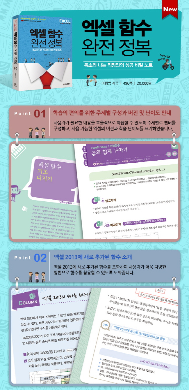 ¡Ú ¿¢¼¿ÀÇ A to Z, ÇÔ¼ö¸¦ ÀÀ¿ëÇϱâ Àü¿¡ ±âÃʺÎÅÍ ÅºÅºÇÏ°Ô ´ÙÁú ¼ö ÀÖµµ·Ï µµ¿ÍÁÝ´Ï´Ù. ¡Ú Àü¹®°¡¿¡°Ô ¹è¿ì´Â ³ëÇÏ¿ì·Î ÇÔ¼ö¸¦ ´õ¿í ½±°Ô ÀÌÇØÇϰí Ȱ¿ëÇÒ ¼ö ÀÖ½À´Ï´Ù. ¡Ú ´Ü°èº° ³À̵µ¿¡ µû¶ó ÇÔ¼öÀÇ ´Ù¾çÇÑ È°¿ë ¹æ¹ýÀ» ¹è¿ó´Ï´Ù. ¡Ú Ȱ¿ëµµ°¡ °¡Àå ³ôÀº ÇÔ¼öºÎÅÍ ¿¢¼¿ 2013¿¡¼ »õ·Î Ãß°¡µÈ ÇÔ¼ö±îÁö! ÀÌÁ¦ ÇÔ¼öµµ °ñ¶ó ¾µ ¼ö ÀÖ½À´Ï´Ù. ¡Ú ½Ç¹« ÇÔ¼ö Ȱ¿ë ¹æ¹ýÀ» ÀÍÇô ¼ö¸¹Àº ¿¹¿Ü »óȲ¿¡¼ ¹ß»ýÇÏ´Â ¹®Á¦¸¦ ½±°Ô ÇØ°áÇÒ ¼ö ÀÖ½À´Ï´Ù. ¡Ú ³²µéÀÌ ½á³õÀº ¼ö½ÄÀ» º£²¸ ¾²´Â °ÍÀº ÀÌÁ¦ ±×¸¸! ¿©·¯ºÐ ½º½º·Î ¼ö½ÄÀ» Á÷Á¢ ÀÛ¼ºÇÒ ¼ö ÀÖ½À´Ï´Ù.