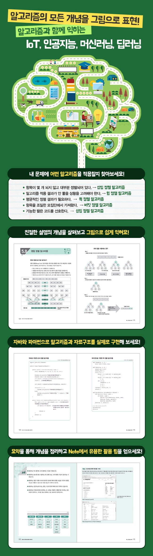 IT ºÐ¾ß Ãë¾÷°ú ÇÁ·Î±×·¡¹Ö ¸éÁ¢, °¢Á¾ ½ÃÇè¿¡ ´ëºñÇÒ ¼ö ÀÖ½À´Ï´Ù! ±âº»ÀûÀÎ ÄÄÇ»ÅÍÀÇ ¿ø¸®¿Í ¹ßÀüºÎÅÍ ¾Ë°í¸®Áò, ÀڷᱸÁ¶¿Í °ü·ÃÇÏ¿© IT ºÐ¾ß ¸éÁ¢°ú ½ÃÇè¿¡ ÀÚÁÖ ³ª¿À´Â ´Ù¾çÇÑ ¹®Á¦¿¡ ´ëÇÑ ÇØ°áÃ¥À» ÀÚ¼¼È÷ ´Ù·ç°í ÀÖ½À´Ï´Ù. ÇÁ·Î±×·¡¹ÖÀ» óÀ½ °øºÎÇÏ´Â »ç¶÷ºÎÅÍ ±â¼ú ¸éÁ¢À» ÁغñÇϰí ÀÖ´Â °³¹ßÀÚ¿¡°Ô À¯¿ëÇÑ Áöħ¼°¡ µÉ °ÍÀÔ´Ï´Ù. ¾Ë°í¸®ÁòÀÇ ¸ðµç °³³äÀ» ±×¸²À¸·Î Ç¥ÇöÇÏ¿´½À´Ï´Ù! ¾î¶² ¾ð¾î¸¦ »ç¿ëÇÏµç ¾Ë°í¸®ÁòÀº ±âº»ÀÌ µÇ¸ç, Áß¿äÇÕ´Ï´Ù. ÇÏÁö¸¸ ±Û·Î¸¸ ÀÌÇØÇϱâ´Â ¾î·Á¿ï ¼ö ÀÖ½À´Ï´Ù. µ¶ÀÚ°¡ ½±°Ô ÀÌÇØÇÒ ¼ö ÀÖµµ·Ï µ½±â À§ÇØ ¾Ë°í¸®Áò°ú ÀڷᱸÁ¶ÀÇ ¸ðµç °³³äÀ» Ç¥¿Í ±×¸²À» ÀÌ¿ëÇØ ¼ö·ÏÇÏ¿´½À´Ï´Ù. ±¸Ã¼ÀûÀÎ ±×¸²À» ÅëÇØ ¾î·Á¿î ³»¿ëÀ» ½±°Ô ÀÌÇØÇÒ ¼ö ÀÖ½À´Ï´Ù. ÀÚ¹Ù¿Í ÆÄÀ̽ãÀ¸·Î ¾Ë°í¸®ÁòÀ» ÀÍÈú ¼ö ÀÖ½À´Ï´Ù! À̷аú ±×¸²À» ÅëÇØ ¹è¿î ¾Ë°í¸®Áò°ú ÀڷᱸÁ¶¸¦ ÀÚ¹Ù¿Í ÆÄÀ̽㠿¹Á¦ ¼Ò½º¸¦ ÅëÇØ Çϳª¾¿ ÄÚµùÇÏ¸ç ¾î¶»°Ô ¹®Á¦¸¦ ÇØ°áÇÏ´ÂÁö ÀÌÇØÇÒ ¼ö ÀÖ½À´Ï´Ù. ÀÌ·Ð ¡æ ±×¸² ¡æ ¿¹Á¦ ¼Ò½º·Î À̾îÁö´Â ±¸¼ºÀ» ÅëÇØ ¾Ë°í¸®Áò°ú ÀڷᱸÁ¶ °³³äÀ» È®½ÇÈ÷ ´ÙÁö¸ç ÀÀ¿ë·ÂÀ» Ű¿ï ¼ö ÀÖ½À´Ï´Ù.